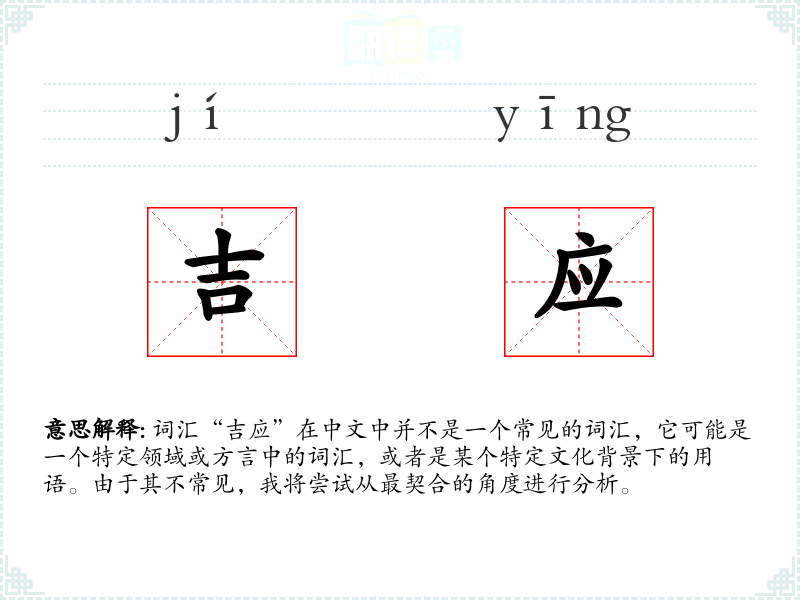 由于“吉应”不是一个常见的词汇,它在不同语言或文化中的对应词汇可能难以找到。