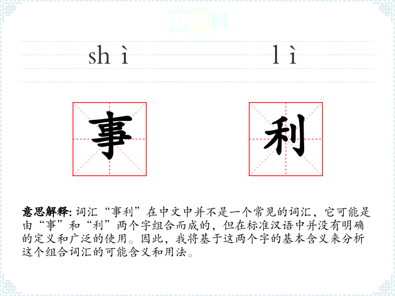 尽管“事利”不是一个标准词汇,但它反映了人们对于在处理事情时追求利益的关注。在语言学*和表达中,理解这种组合词汇的含义和用法可以帮助我们更好地理解特定语境下的语言运用。