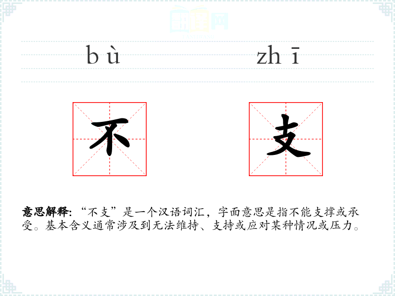 “不支”是一个汉语词汇,字面意思是指不能支撑或承受。基本含义通常涉及到无法维持、支持或应对某种情况或压力。