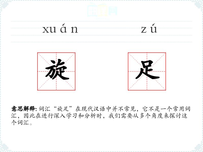 词汇“旋足”在现代汉语中并不常见,它不是一个常用词汇,因此在进行深入学习和分析时,我们需要从多个角度来探讨这个词汇。
