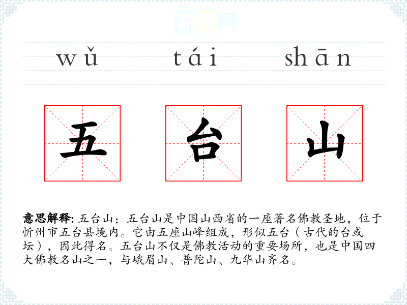 - 口语:在日常对话中,提到五台山可能意味着谈论**信仰、旅游经历或历史文化。