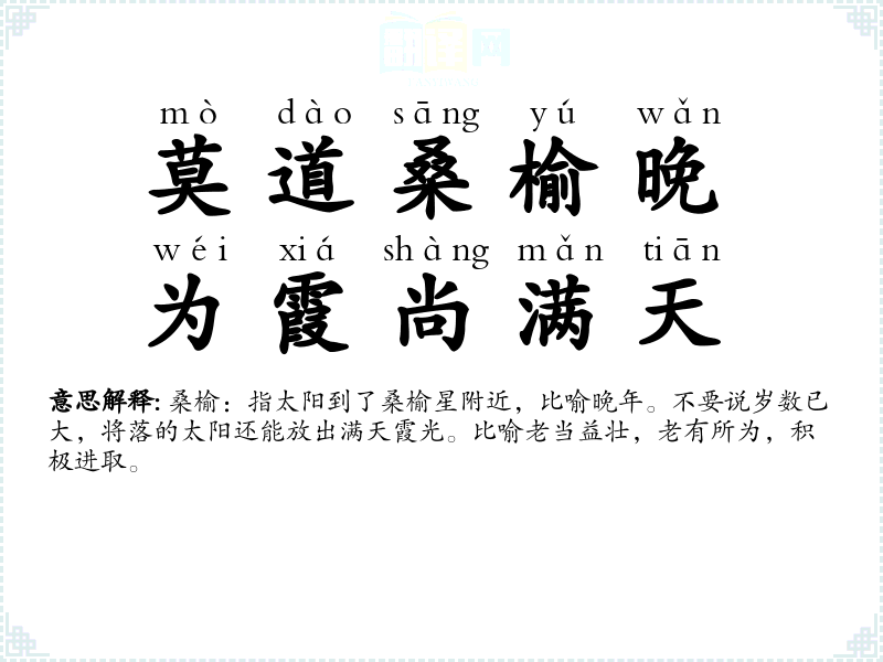 - dōng yú yǐ shì,sāng yú fēi wǎn东隅已逝,桑榆非晚
