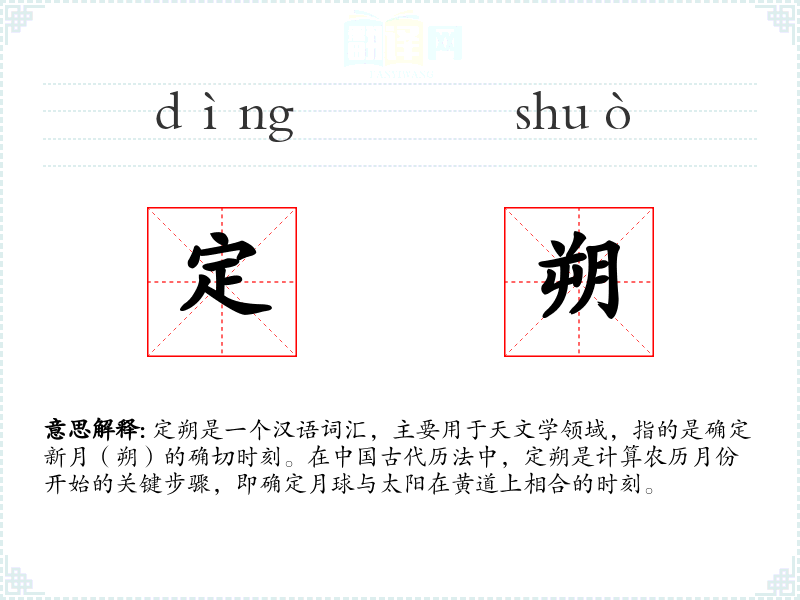 - 专业领域:在天文学和历法学中,定朔是一个专业术语,用于精确计算和描述月相变化。