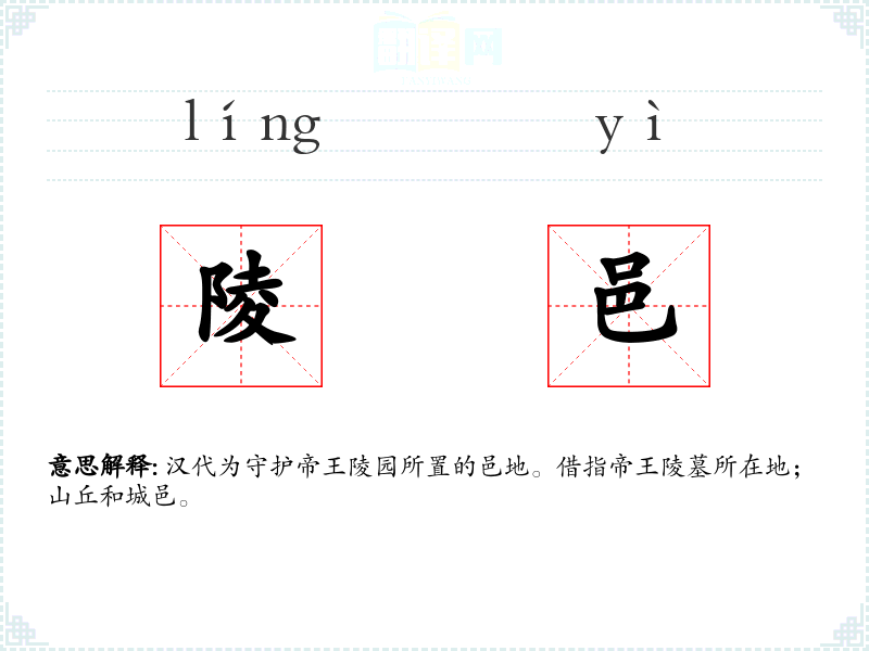 汉代为守护帝王陵园所置的邑地。借指帝王陵墓所在地; 山丘和城邑。