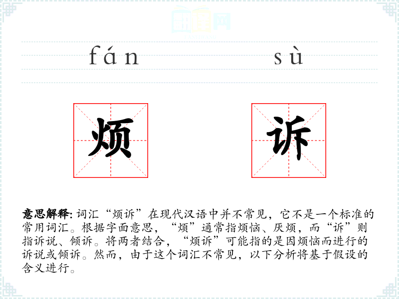 “烦诉”可以理解为因内心的烦恼或不满而向他人倾诉的行为或过程。