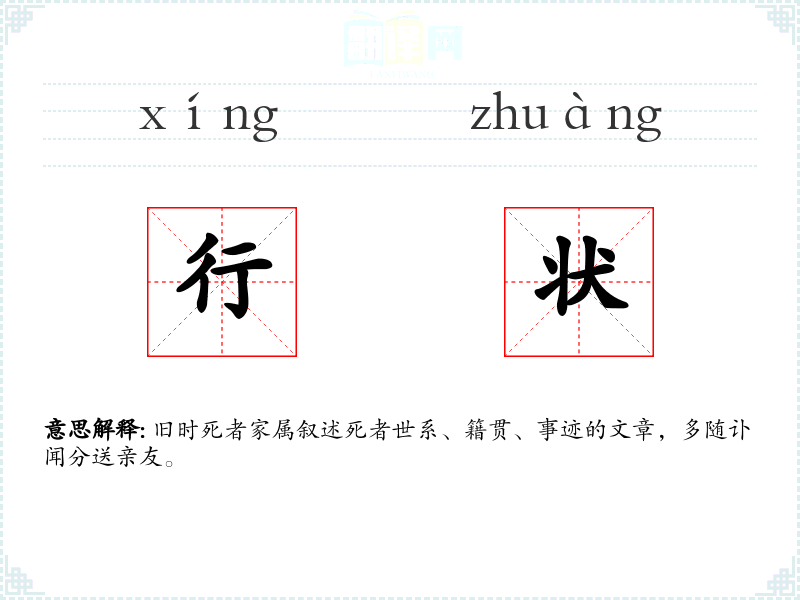 行状的分字解释