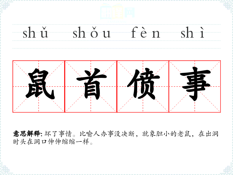坏了事情。比喻人办事没决断,就象胆小的老鼠,在出洞时头在洞口伸伸缩缩一样。
