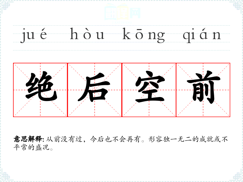 "绝后空前"的意思解释、绝后空前是什么意思由翻译网汉语词典查词提供。