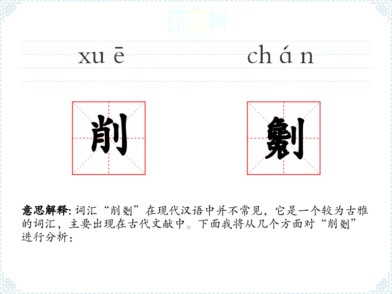 词汇“削剗”在现代汉语中并不常见,它是一个较为古雅的词汇,主要出现在古代文献中。下面我将从几个方面对“削剗”进行分析: