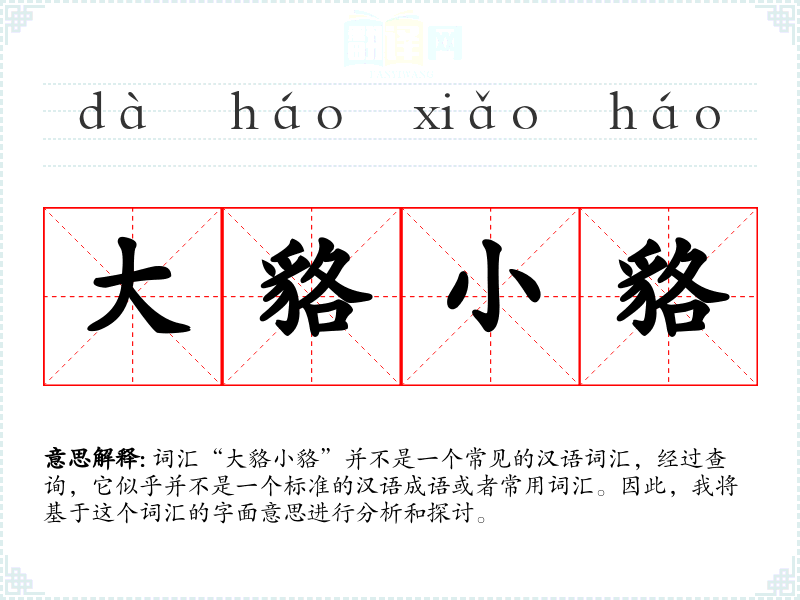 “大貉小貉”字面意思是指大型的貉和小型的貉。貉是一种哺乳动物,属于犬科,外形似狐,但体型较小,主要分布在东亚地区。在这个词汇中,“大”和“小”是对貉的体型进行描述的形容词。