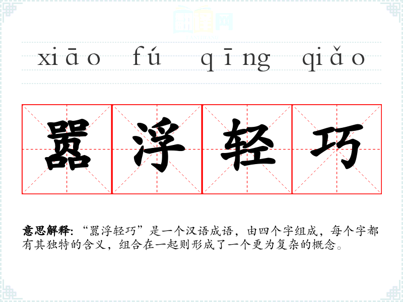 “嚣浮轻巧”是一个汉语成语,由四个字组成,每个字都有其独特的含义,组合在一起则形成了一个更为复杂的概念。