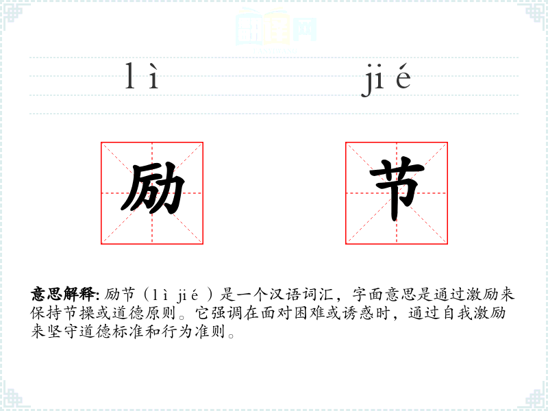 励节是一个强调道德坚守和自我激励的词汇,它在文学和道德教育中有着重要的应用。尽管在现代汉语中使用频率不高,但它仍然是一个值得推崇的品质,对于个人和社会都有着积极的影响。