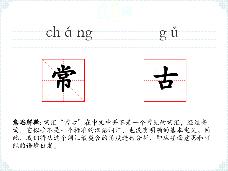 由于“常古”不是一个标准词汇,我们可以尝试从字面意思来解释:
