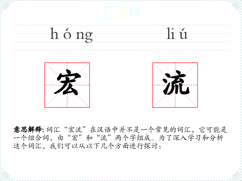 - 在特定的文化或社会背景下,“宏流”可能被用来强调某种社会现象或历史**的宏观影响。