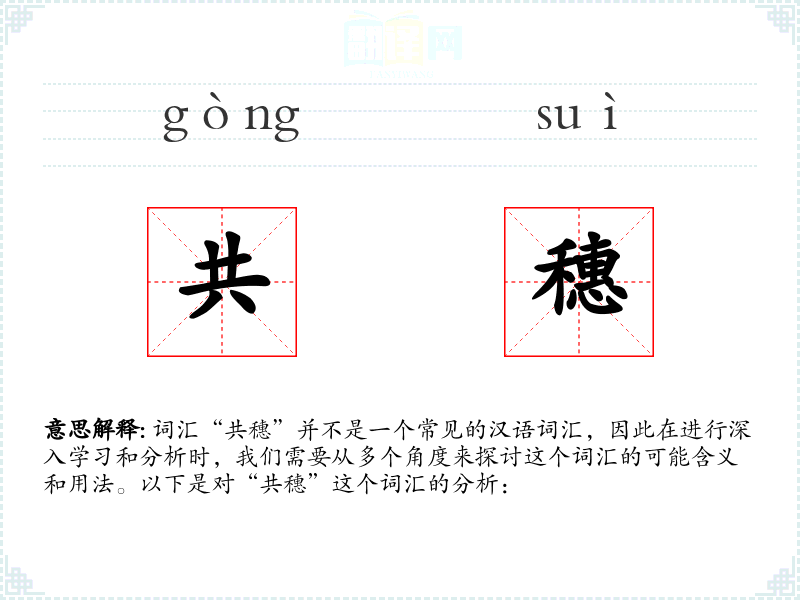 词汇“共穗”并不是一个常见的汉语词汇,因此在进行深入学习和分析时,我们需要从多个角度来探讨这个词汇的可能含义和用法。以下是对“共穗”这个词汇的分析: