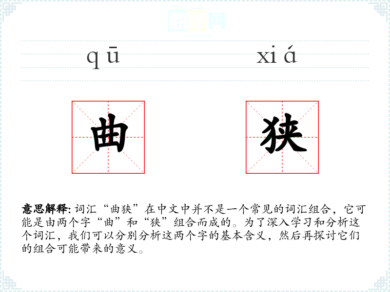 通过对“曲狭”这个词汇的分析,我们可以看到它在描述空间特征和抽象概念时的灵活性。在语言学*和表达中,了解和掌握这样的词汇可以帮助我们更准确地传达复杂的概念和情感。