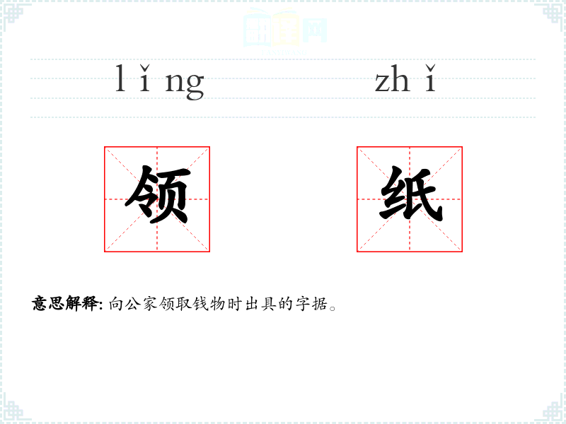 领纸的分字解释