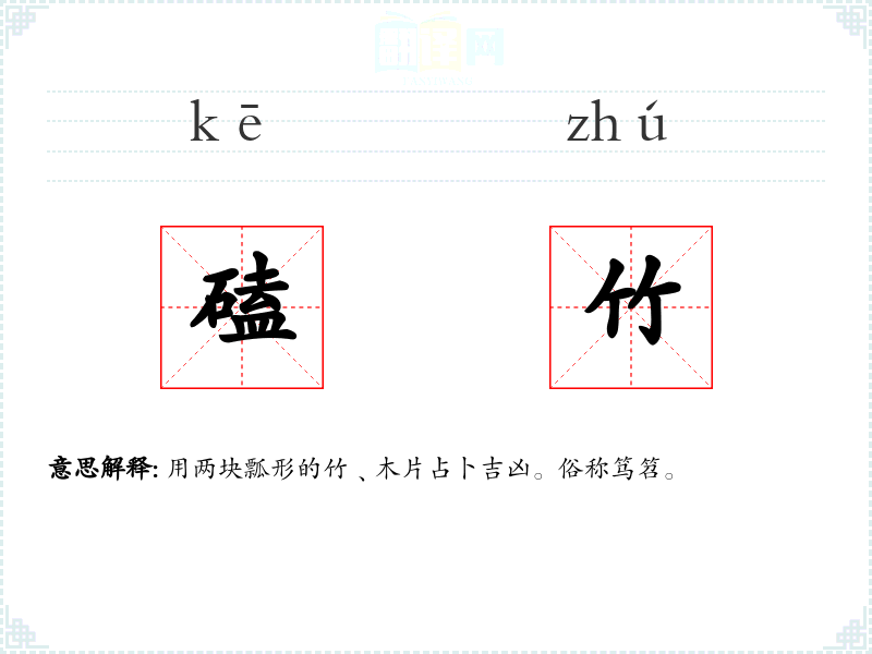 用两块瓢形的竹﹑木片占卜吉凶。俗称笃笤。