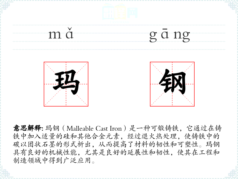 在不同语言中,“玛钢”可能被翻译为不同的词汇,但其基本含义和应用领域是相似的。