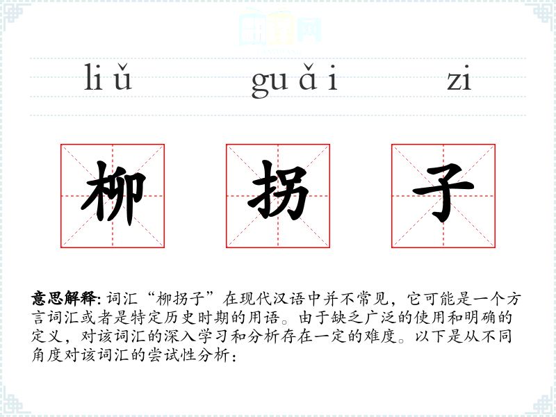 由于“柳拐子”不是一个常用词汇,其在不同语言或文化中的对应词汇及其使用情况不详。