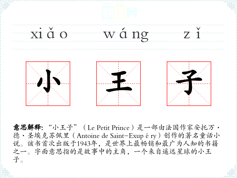 “小王子”这个词源于法语“Le Petit Prince”,直译为“小王子”。随着这本书的全球传播,这个词也成为了国际性的文化符号。