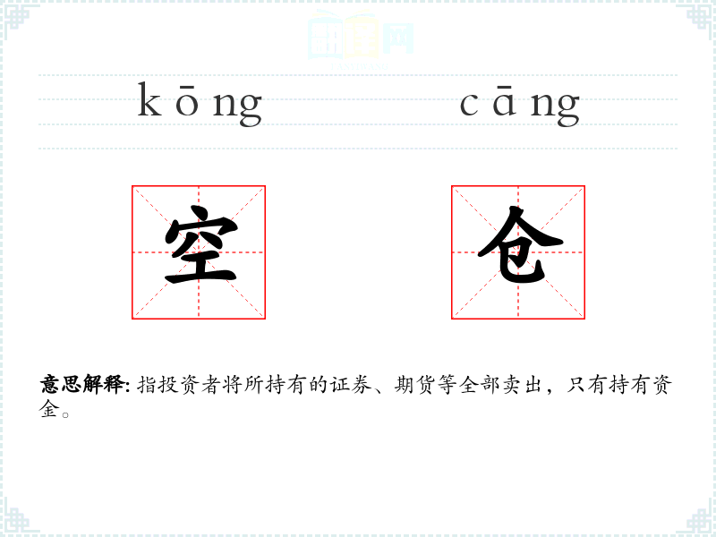 指投资者将所持有的证券、期货等全部卖出,只有持有资金。