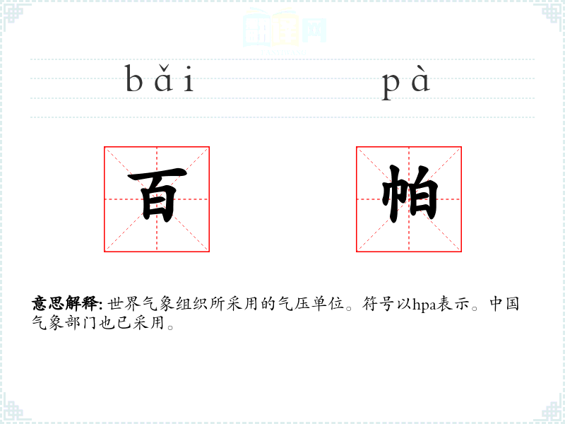 世界气象组织所采用的气压单位。符号以hpa表示。中国气象部门也已采用。
