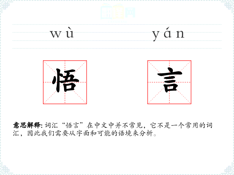 词汇“悟言”在中文中并不常见,它不是一个常用的词汇,因此我们需要从字面和可能的语境来分析。
