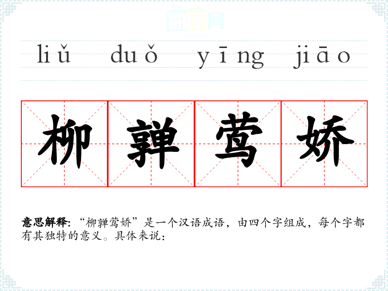 “柳亸莺娇”是一个汉语成语,由四个字组成,每个字都有其独特的意义。具体来说: