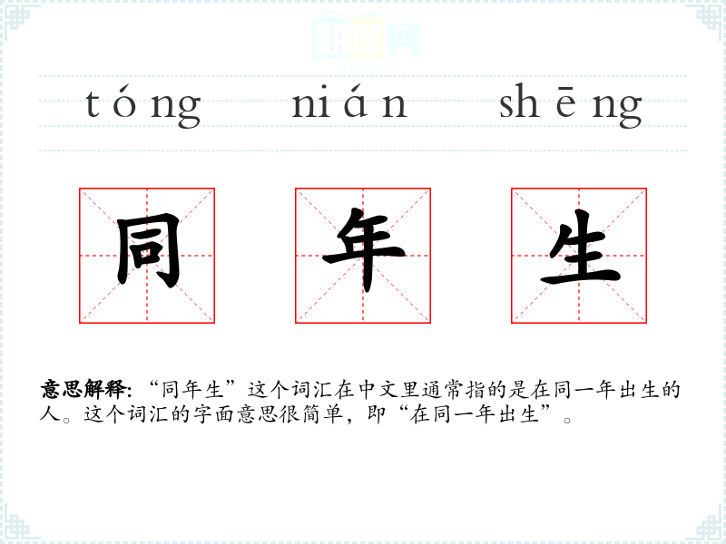 "同年生"的意思解释、同年生是什么意思由翻译网汉语词典查词提供。