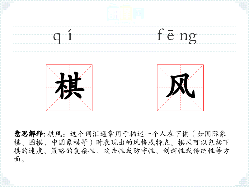 通过对“棋风”的深入学,我认识到这个词汇不仅仅是描述下棋的风格,它还反映了棋手的个性、智慧和策略。在语言学和表达中,理解并运用这样的词汇可以丰富我的表达方式,并帮助我更好地理解和欣赏不同文化和思维方式。