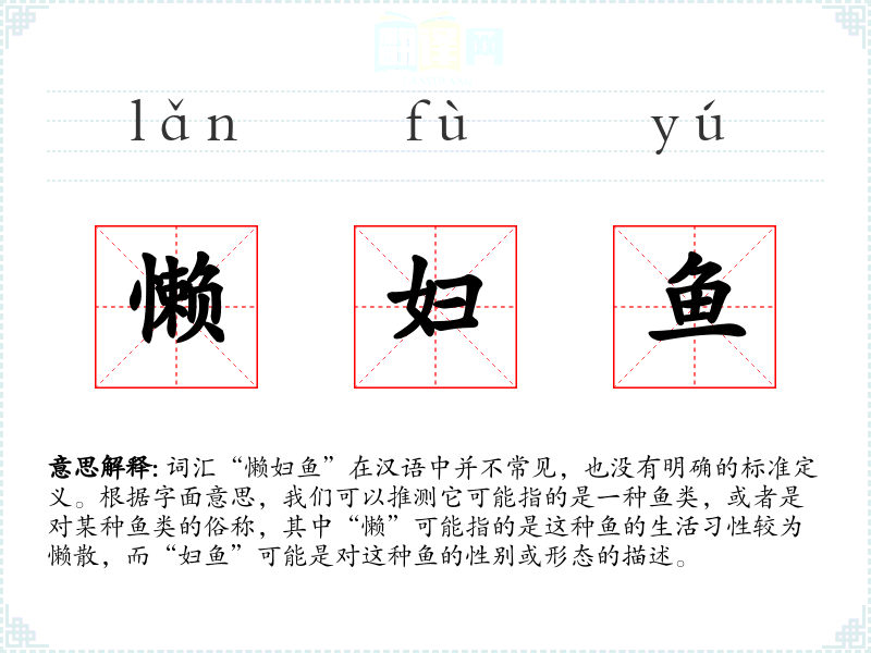 由于“懒妇鱼”不是一个标准词汇,它在不同语言或文化中的对应词汇可能不存在。如果有类似的表达,可能会在某些地方性的语言中找到。