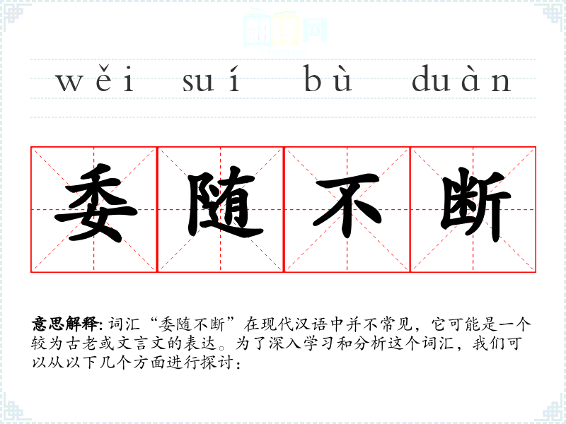 词汇“委随不断”在现代汉语中并不常见,它可能是一个较为古老或文言文的表达。为了深入学习和分析这个词汇,我们可以从以下几个方面进行探讨: