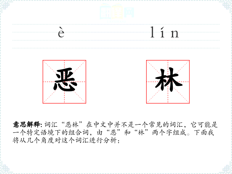 - 由于“恶林”不是一个常用词汇,其词源和演变不太明确,可能是现代创作或特定语境下的产物。