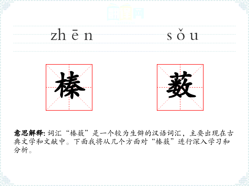 词汇“榛薮”是一个较为生僻的汉语词汇,主要出现在古典文学和文献中。下面我将从几个方面对“榛薮”进行深入学*和分析。