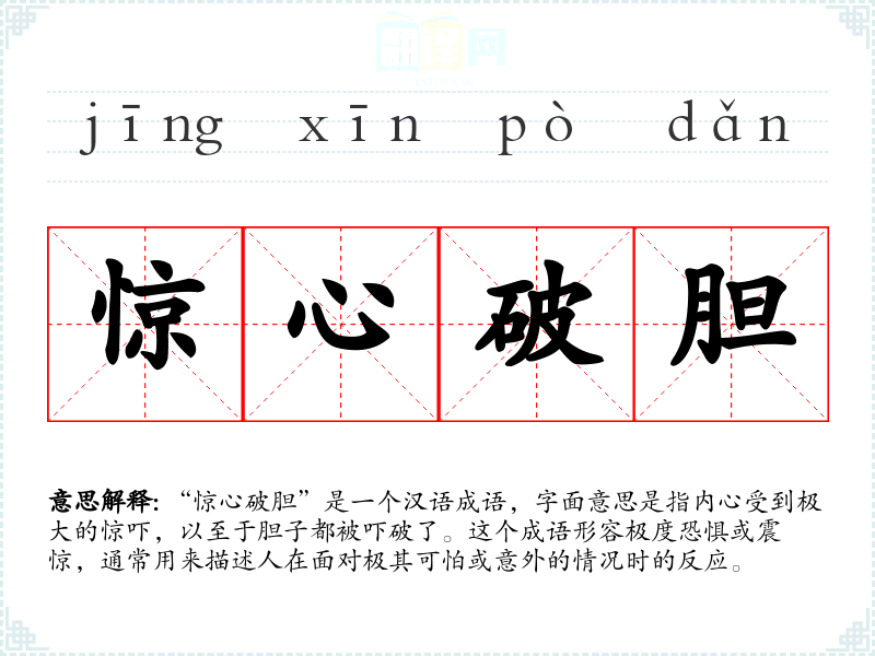 “惊心破胆”这个成语的词源较为模糊,但它反映了古代汉语中对于心理状态的生动描述。随着时间的推移,这个成语的使用逐渐固定,成为描述极端恐惧的常用表达。