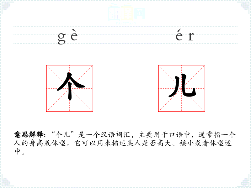 “个儿”是一个非常实用的词汇,它简洁地表达了身高这一概念,且在不同的语境中都能灵活运用。在学*汉语时,掌握这样的词汇对于提高语言的表达能力非常重要。
