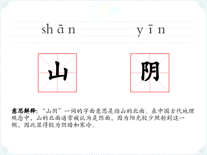 “山阴”这个词不仅是一个地理方位的描述,更蕴含了丰富的文化和情感内涵。在语言学*和表达中,理解这样的词汇可以帮助我们更深入地把握语言的细腻之处,丰富我们的表达方式。