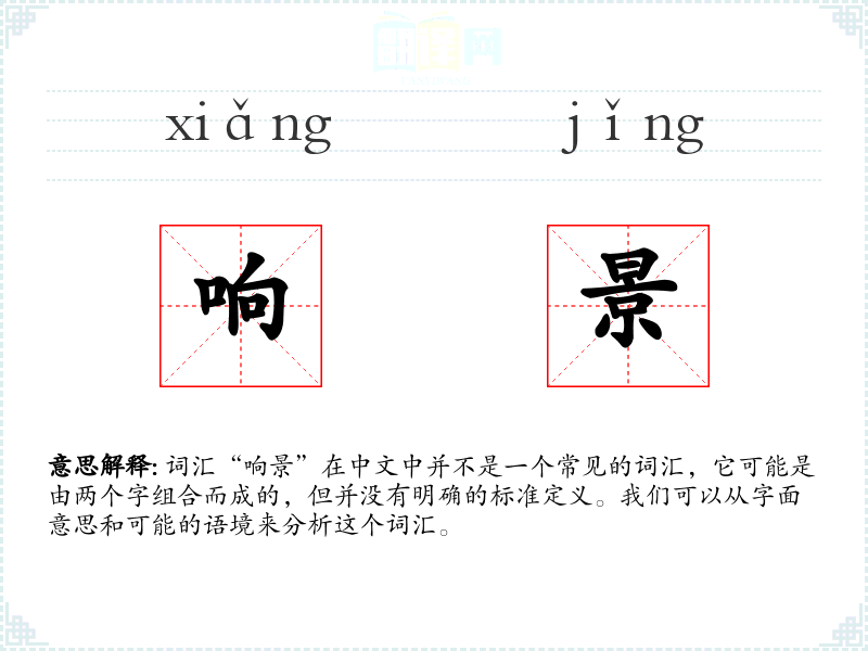 词汇“响景”在中文中并不是一个常见的词汇,它可能是由两个字组合而成的,但并没有明确的标准定义。我们可以从字面意思和可能的语境来分析这个词汇。