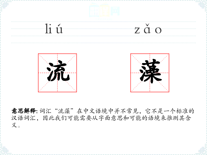 词汇“流藻”在中文语境中并不常见,它不是一个标准的汉语词汇,因此我们可能需要从字面意思和可能的语境来推测其含义。
