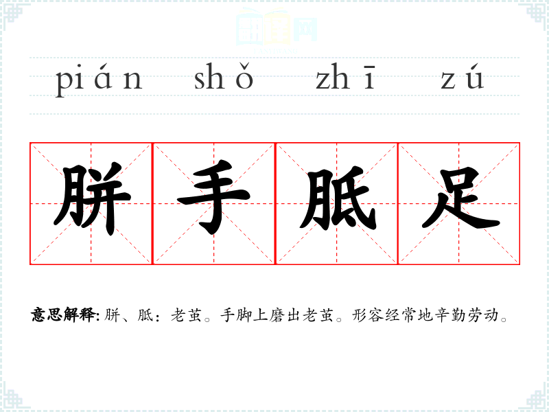 - pián shǒ zhī zú胼手胝足