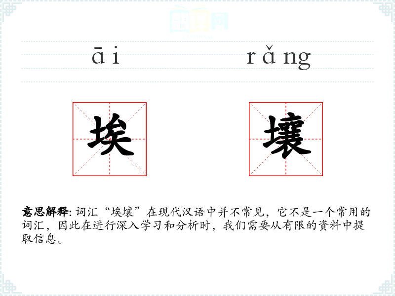 词汇“埃壤”在现代汉语中并不常见,它不是一个常用的词汇,因此在进行深入学习和分析时,我们需要从有限的资料中提取信息。