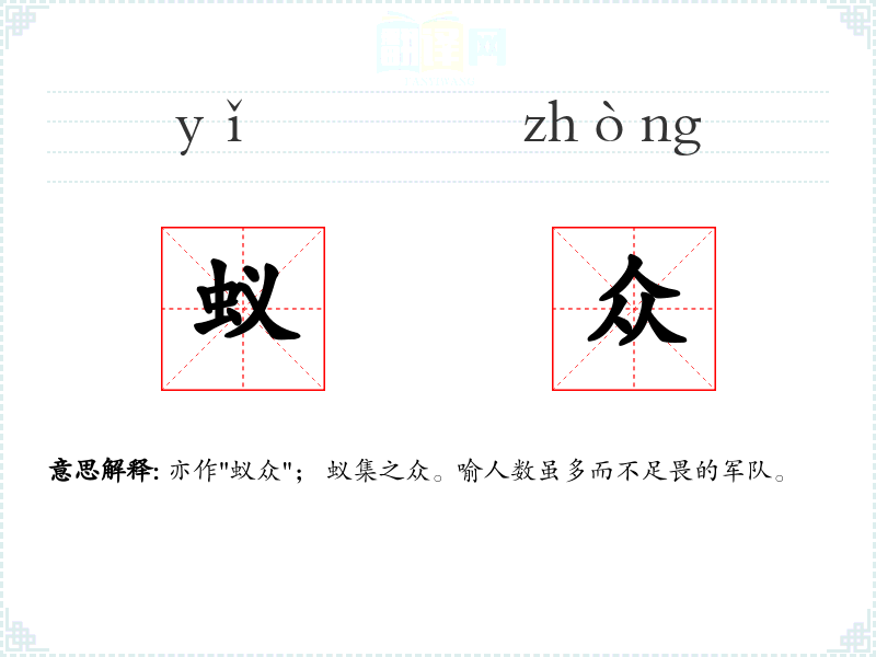 亦作"蚁众"; 蚁集之众。喻人数虽多而不足畏的军队。