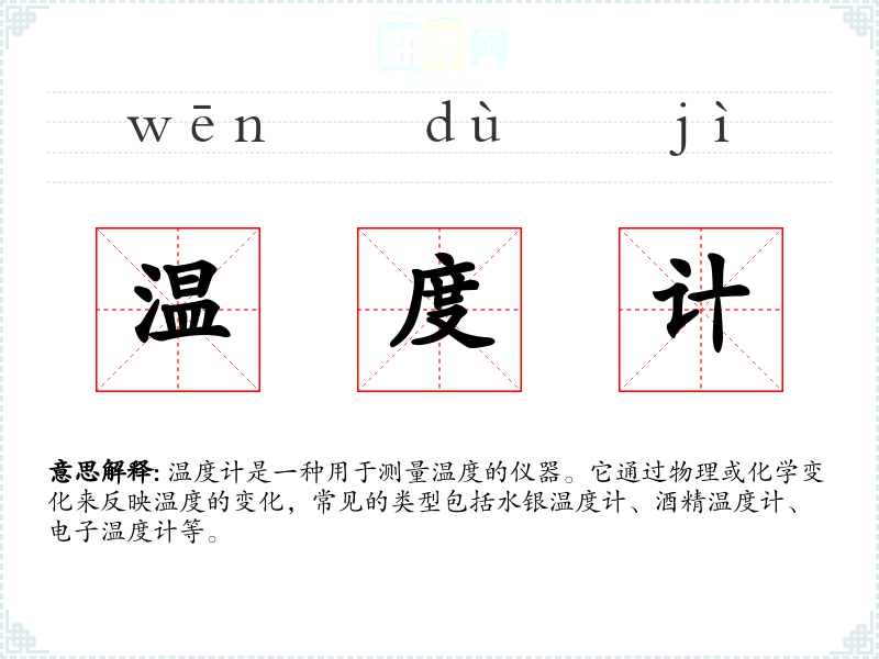 "温度计"的意思解释、温度计是什么意思由翻译网汉语词典查词提供。