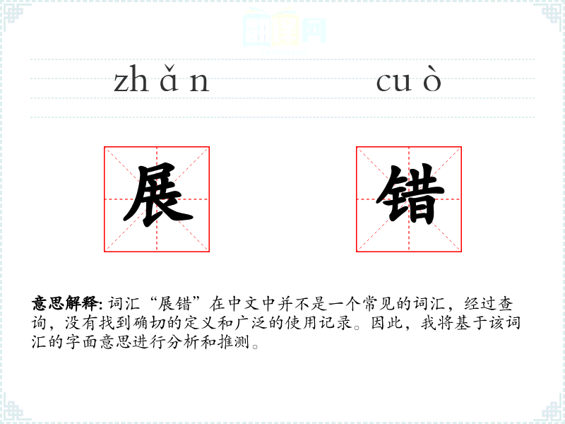 词汇“展错”在中文中并不是一个常见的词汇,经过查询,没有找到确切的定义和广泛的使用记录。因此,我将基于该词汇的字面意思进行分析和推测。