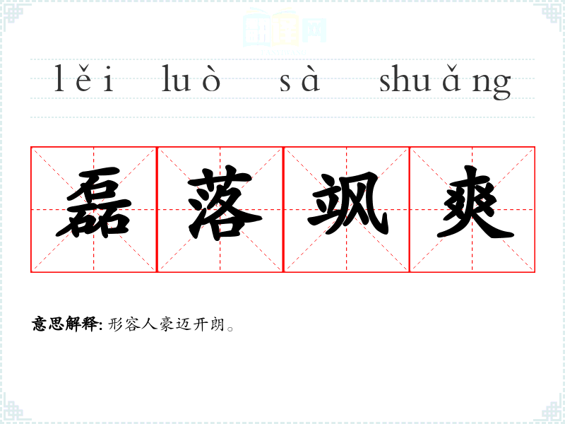"磊落飒爽"的意思解释、磊落飒爽是什么意思由翻译网汉语词典查词提供。