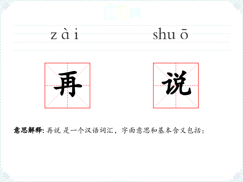 再说 是一个汉语词汇,字面意思和基本含义包括: