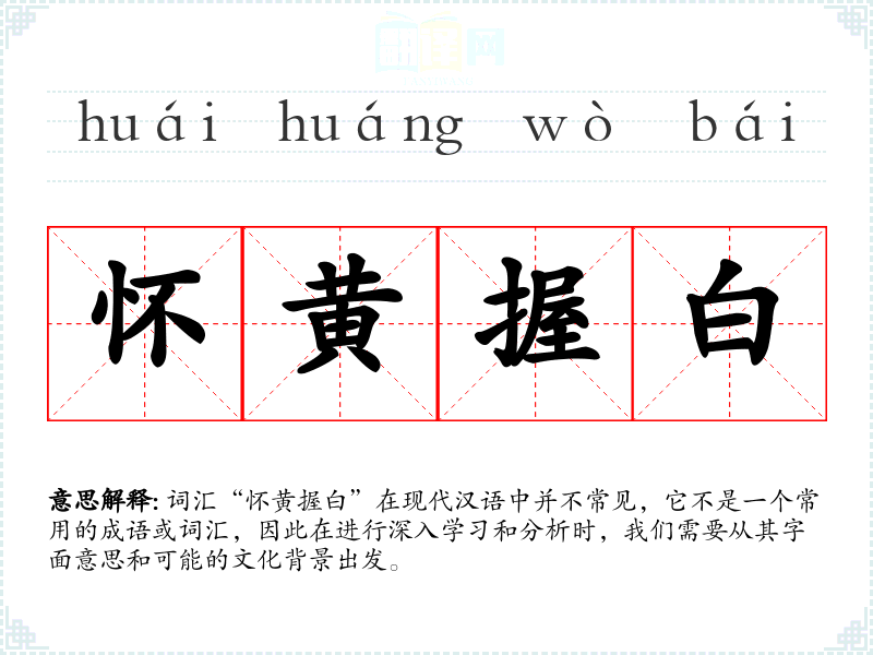 词汇“怀黄握白”在现代汉语中并不常见,它不是一个常用的成语或词汇,因此在进行深入学习和分析时,我们需要从其字面意思和可能的文化背景出发。