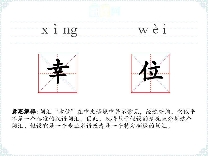 词汇“幸位”在中文语境中并不常见,经过查询,它似乎不是一个标准的汉语词汇。因此,我将基于假设的情况来分析这个词汇,假设它是一个专业术语或者是一个特定领域的词汇。
