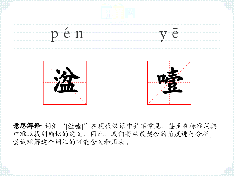 词汇“[湓噓]”在现代汉语中并不常见,甚至在标准词典中难以找到确切的定义。因此,我们将从最契合的角度进行分析,尝试理解这个词汇的可能含义和用法。